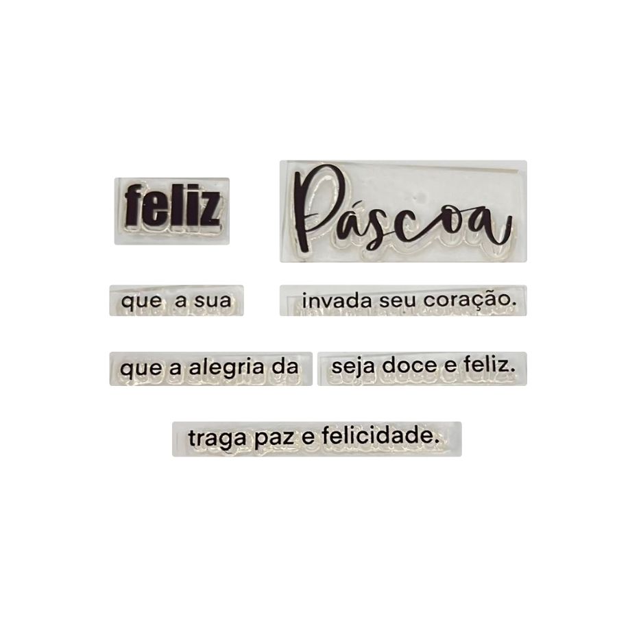 Cada carimbo é produzido com base em madeira de alta qualidade e borracha durável, garantindo impressões precisas, limpas e com excelente definição. As frases incluem palavras que remetem à união, fé, amor, renascimento e alegria, trazendo o verdadeiro espírito da Páscoa para suas criações.