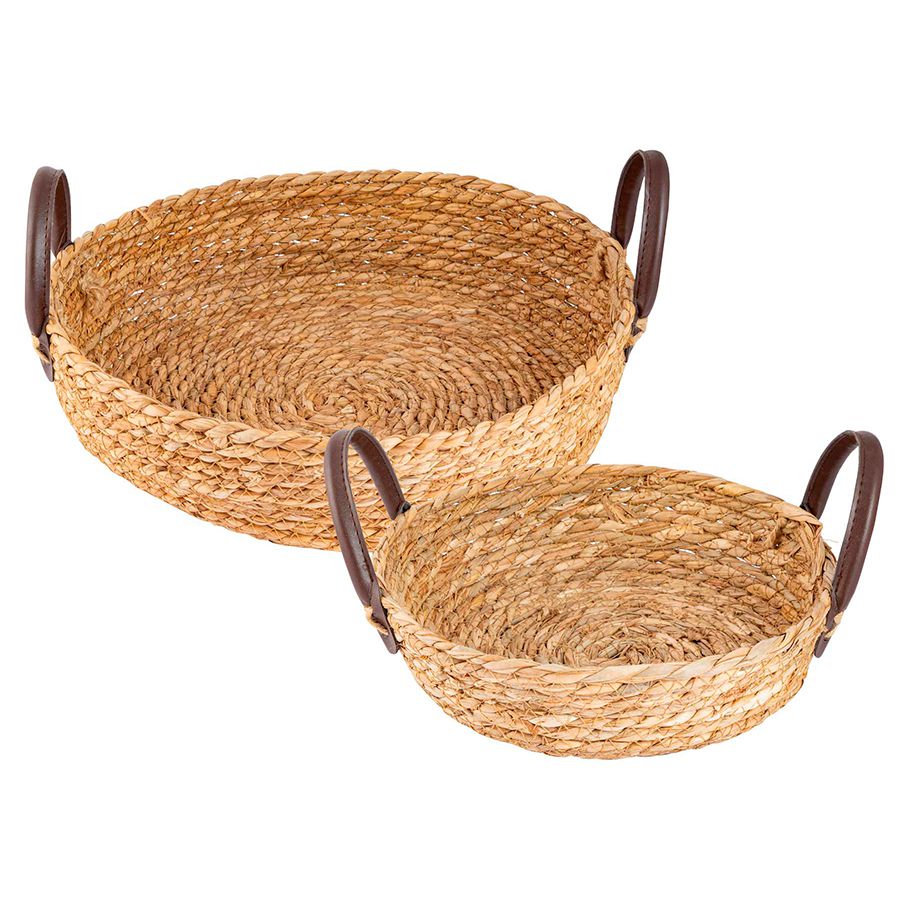 Cestas redondas de seagrass com alça de courino