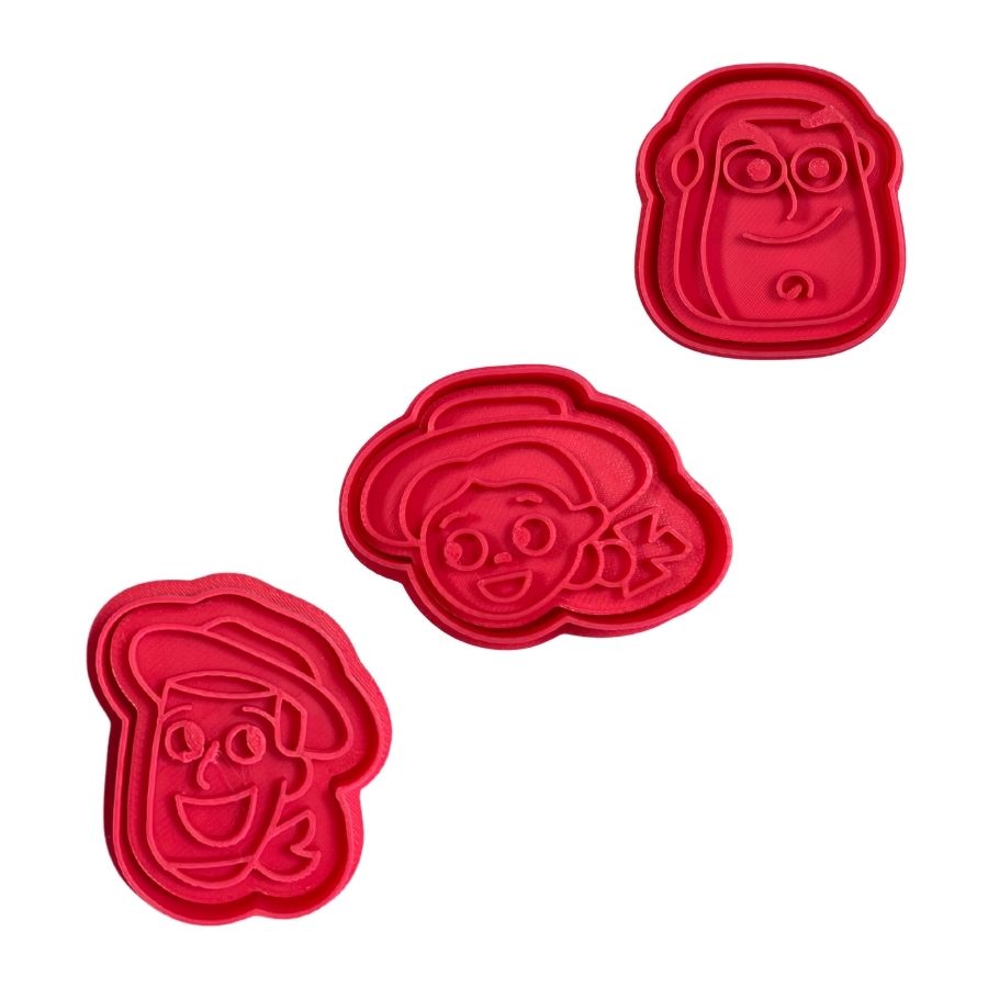 Kit de cortador e carimbo para confeitaria com boneca, astronauta e cowboy