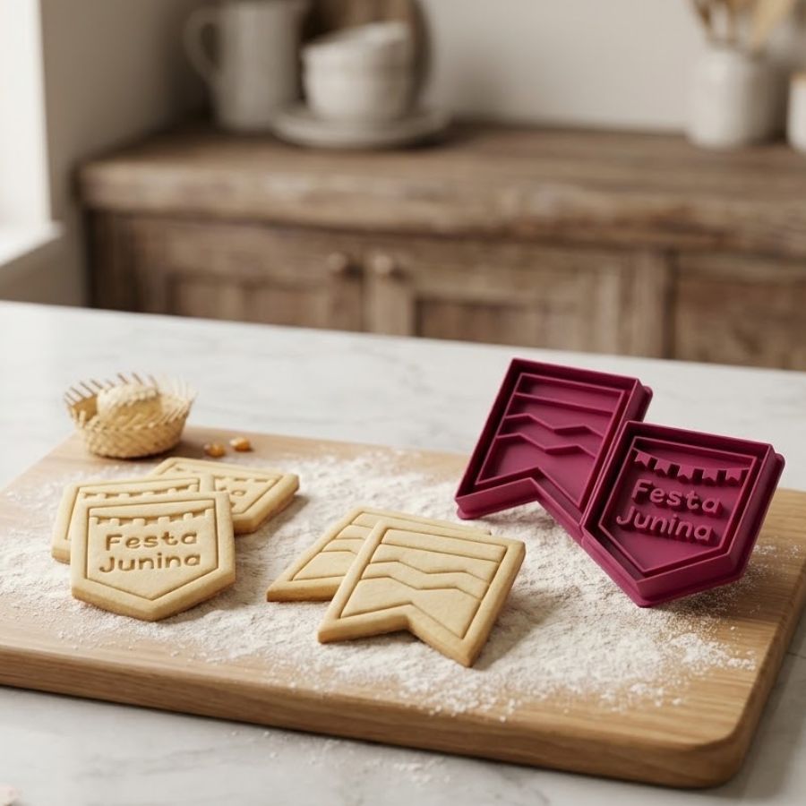 Kit de cortador e carimbo para confeitaria com bandeirinhas de festa junina