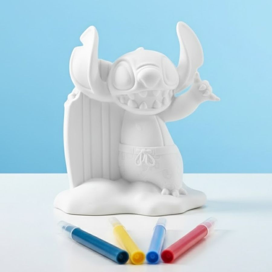 O Kit de Pintura Figura em Vinil do Stitch Disney convida a soltar a imaginação de forma prática e divertida. O conjunto é composto por 1 figura do Stitch Disney em vinil branco, pronta para ganhar cor, acompanhada de 5 canetinhas coloridas que permitem criar diferentes combinações e estilos. O visual da figura é repleto de detalhes que remetem ao personagem, tornando a atividade ainda mais envolvente desde o primeiro contato. A proposta é simples e criativa: colorir, personalizar e transformar o Stitch Disney de acordo com a própria criatividade, explorando cores, traços e ideias livres.