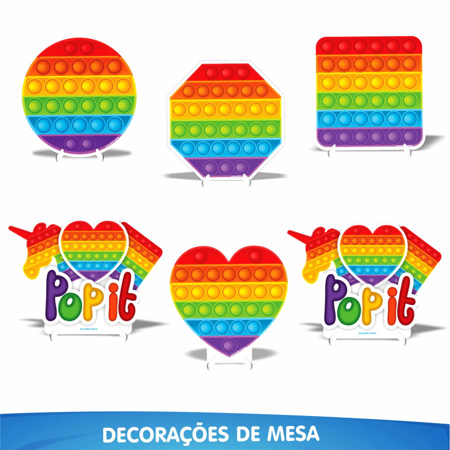 Kit Enfeite de Mesa Festa Pop It - 06pçs - 01 Unidade - Piffer - Rizzo Embalagens