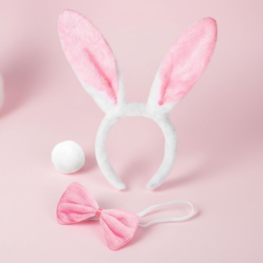 Esse kit fantasia é ideal para festas de Páscoa, ensaios fotográficos, eventos escolares, brincadeiras infantis e ações temáticas. O conjunto acompanha uma tiara com orelhas de coelho, um rabinho de pompom e uma gravatinha, compondo um visual completo e harmonioso. Possui medidas aproximadas de 29x12cm, sendo confortável, leve e fácil de usar.