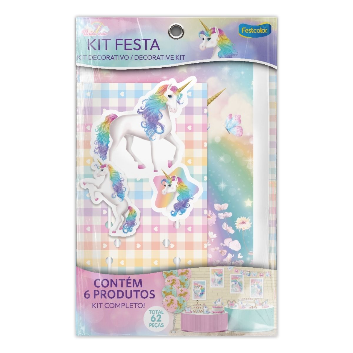 O Kit Festa – Unicórnio – 62 Itens é a escolha perfeita para criar uma decoração encantadora, mágica e cheia de brilho para a sua comemoração. Com cores suaves, elementos fofos e ilustrações que remetem ao universo dos unicórnios, o conjunto traz um visual delicado, fantasioso e repleto de charme, ideal para transformar qualquer ambiente em um cenário de conto de fadas.