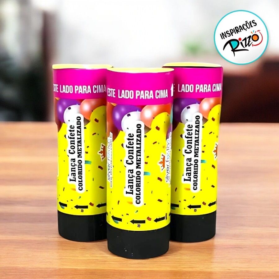 Kit de lança confetes metálico, com cores vibrantes e efeito incrível para festas e eventos. Fácil de usar e biodegradável.