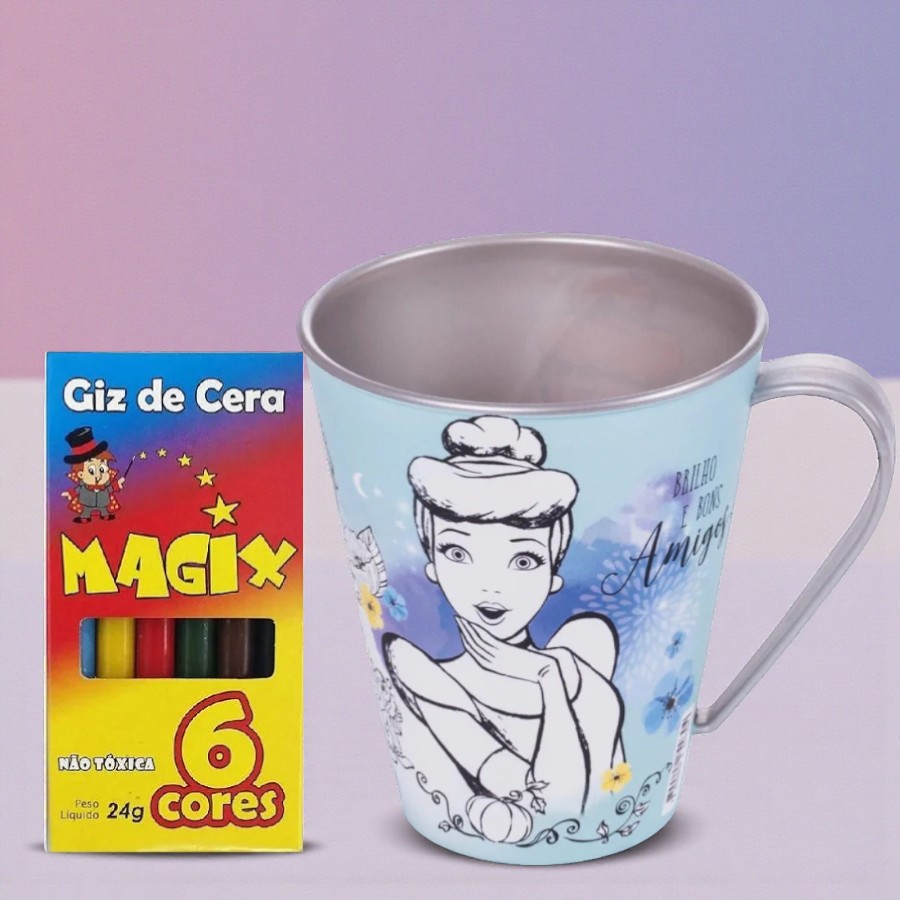 O Kit para Colorir Caneca e Giz - Cinderela é uma proposta encantadora para quem deseja criar uma lembrancinha temática prática e cheia de personalidade. Inspirado no universo da Cinderela Disney, o conjunto combina utilidade e diversão, tornando-se uma alternativa atrativa para festas infantis e celebrações delicadas. A caneca plástica para colorir, livre de BPA, amplia a experiência ao permitir personalizações criativas diretamente na peça, incentivando momentos de imaginação e interação. Ideal para compor mesas de convidados ou surpreender ao final do evento, o kit facilita a organização da festa ao reunir itens que dialogam perfeitamente com decorações de princesas e propostas de lembranças criativas.