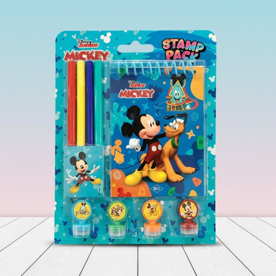 Kit para colorir com mini livro, canetinha e carimbos, Inspirados em Mickey Mouse Disney