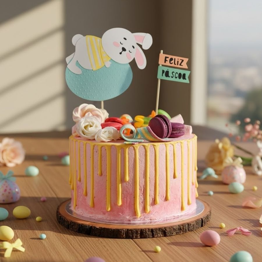O Kit Topo de Bolo Feliz Páscoa Coelhinho Dormindo é o toque perfeito para deixar suas decorações de Páscoa ainda mais encantadoras. Produzido em papel cartão resistente, o kit traz duas peças delicadas: um topo com um coelhinho dormindo sobre um ovo de Páscoa e outro em formato de plaquinha com a frase “Feliz Páscoa”.