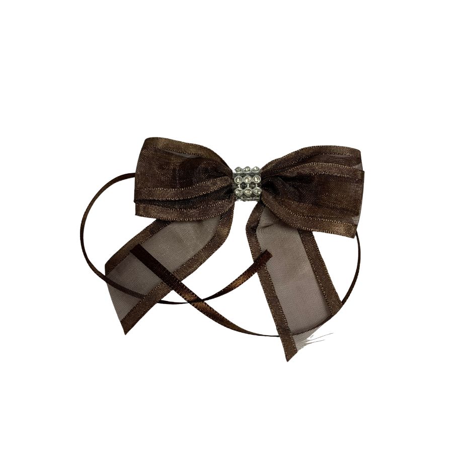 Com medidas de 8x8cm, esse laço é perfeito para quem deseja um acabamento charmoso e delicado, com o destaque sutil do strass prata sobre cores neutras e elegantes.