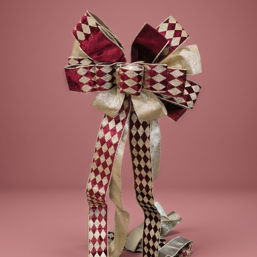 O Laço de Veludo Vinho e Dourado é a escolha perfeita para quem busca uma decoração sofisticada e cheia de personalidade. Com um acabamento aveludado e a combinação elegante do vinho com o dourado, ele cria um visual marcante que valoriza ambientes, árvores e embalagens com muito estilo.
