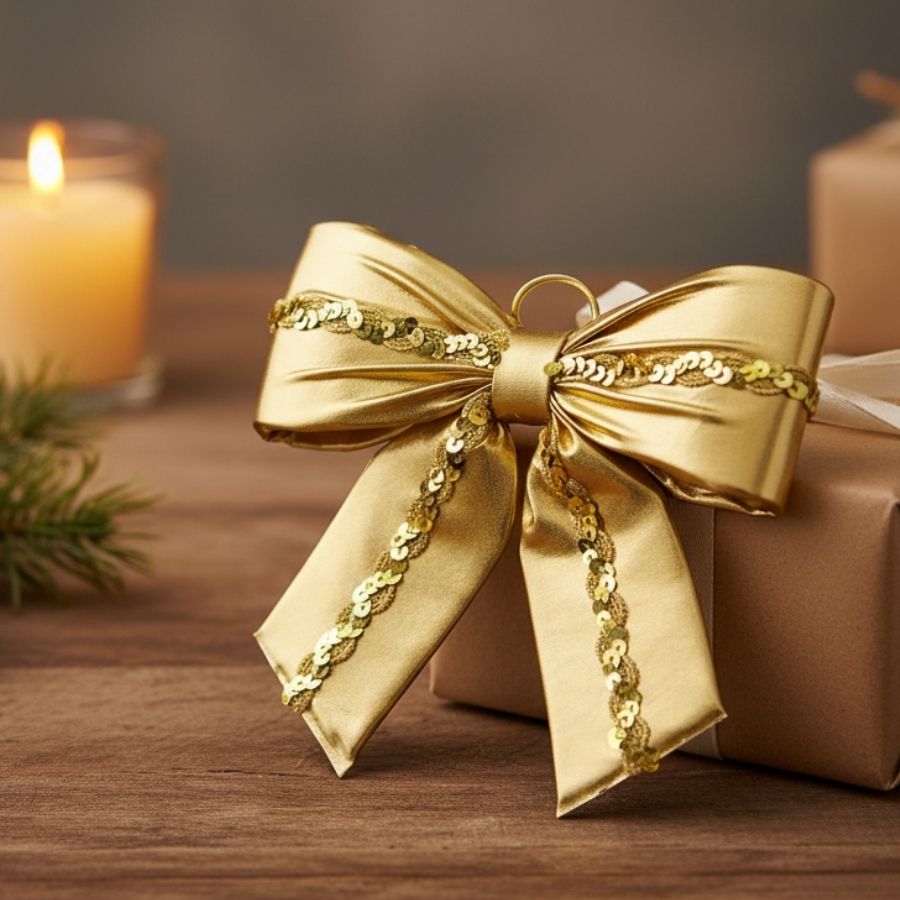 Com estrutura firme e laço pré-montado, é fácil de aplicar em diversos tipos de decoração, proporcionando praticidade e beleza instantânea. Seu acabamento metálico dourado harmoniza com diferentes estilos e cores, transformando qualquer ambiente em uma celebração luminosa e festiva.