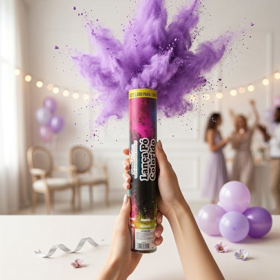 Versátil, o lança pó para festa pode ser utilizado em chá de bebê, aniversários, ensaios fotográficos, eventos ao ar livre e comemorações criativas. É uma excelente escolha para momentos de revelação, criando uma cena emocionante e cheia de significado. Dica prática: utilize em ambientes externos para melhor dispersão e combine com balões, confetes, painéis decorativos e até kits de lembrancinhas para deixar o evento ainda mais especial e coordenado. O lança pó colorido lilás é a opção ideal para quem deseja transformar celebrações em experiências marcantes, com cor, emoção e um toque moderno.