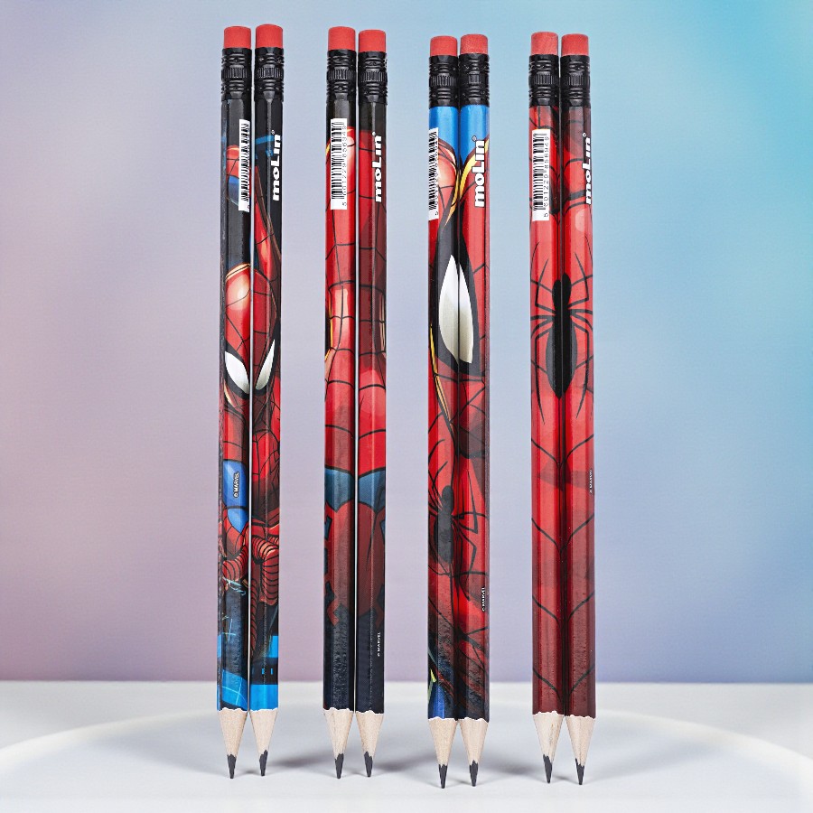 Lápis grafite preto HB inspirado em Homem Aranha Marvel. 1 unidade sortida.