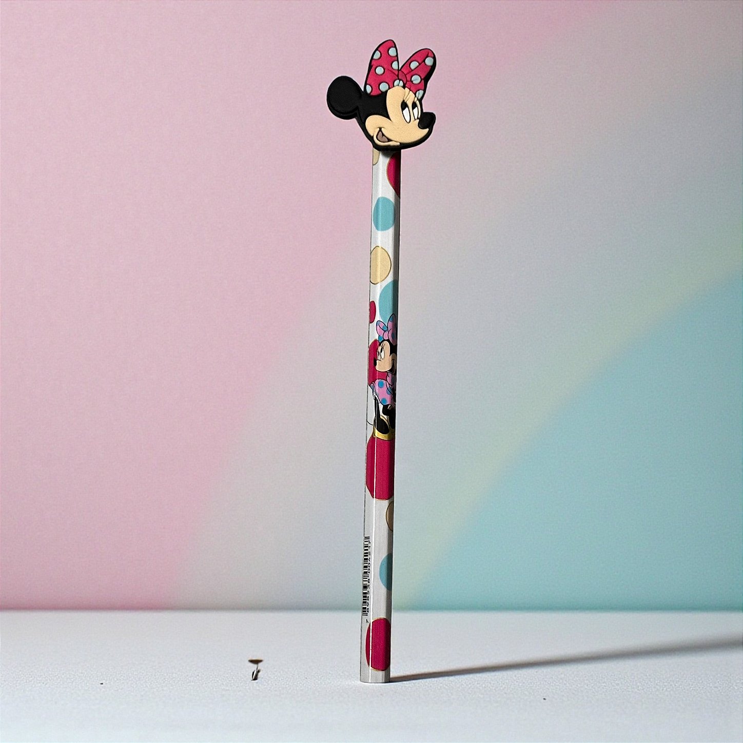 O aplique removível possibilita reaproveitamento, já que pode ser aplicado em outro lápis ou acessório quando este acabar, tornando o item versátil e colecionável. O visual temático transforma o lápis em um destaque no estojo e combina facilmente com canetas Minnie, lapiseiras, estojos decorados e outros itens do mesmo personagem. Ideal para uso diário, coleção, montagem de kits escolares, brindes e lembrancinhas, unindo utilidade e beleza em um único produto.