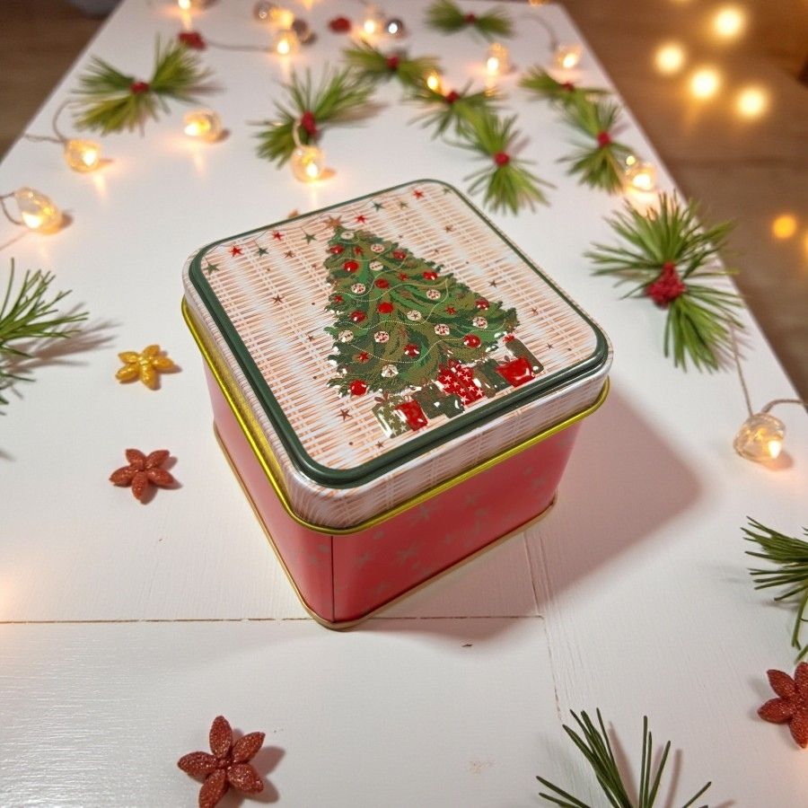 A Lata de Metal de Natal - Árvore De Natal - 7,5x7x6cm é uma embalagem temática e compacta, ideal para armazenar doces, chocolates, biscoitos ou montar lembrancinhas natalinas. Produzida em metal resistente, apresenta ilustração de uma árvore de Natal, trazendo charme e espírito festivo à decoração. Com dimensões de 7,5x7x6cm, é prática, versátil e perfeita para mesas, lembranças ou kits artesanais.