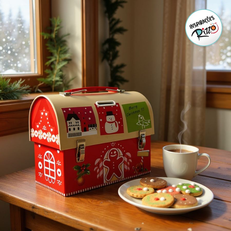 A Lata de Metal de Natal Decorativa - 17x13x8cm - Vermelha e Bege é prática e elegante, ideal para presentear ou decorar ambientes durante o Natal. Produzida em metal resistente, combina durabilidade com um design festivo sofisticado.
