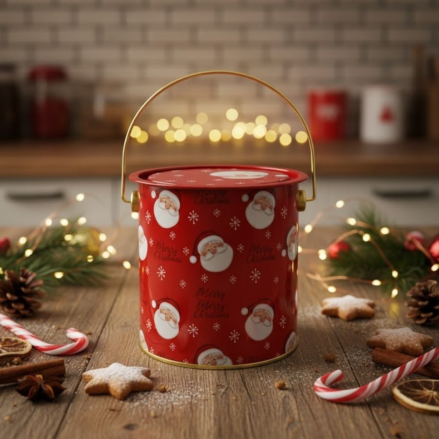 Com alça metálica para fácil transporte, essa lata é ideal para armazenar doces, chocolates, biscoitos, mini presentes ou lembrancinhas de Natal. Além de funcional, é uma peça decorativa que combina com diferentes estilos de ambiente, desde o clássico ao moderno. Uma escolha encantadora para presentear e celebrar a magia do Natal.