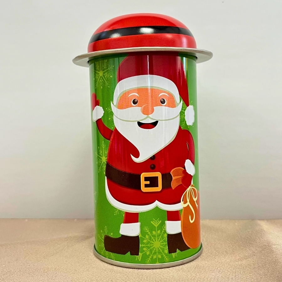 A Mini Lata Decorativa de Natal - Papai Noel Acenando - 5,5x11cm é uma peça simpática e encantadora, perfeita para deixar sua decoração natalina ainda mais acolhedora. Com uma estampa alegre do Papai Noel acenando, essa mini lata é ideal para armazenar doces, balas, pequenos presentes ou compor lembrancinhas e enfeites de mesa. Seu visual festivo e delicado transmite carinho e o verdadeiro espírito do Natal.