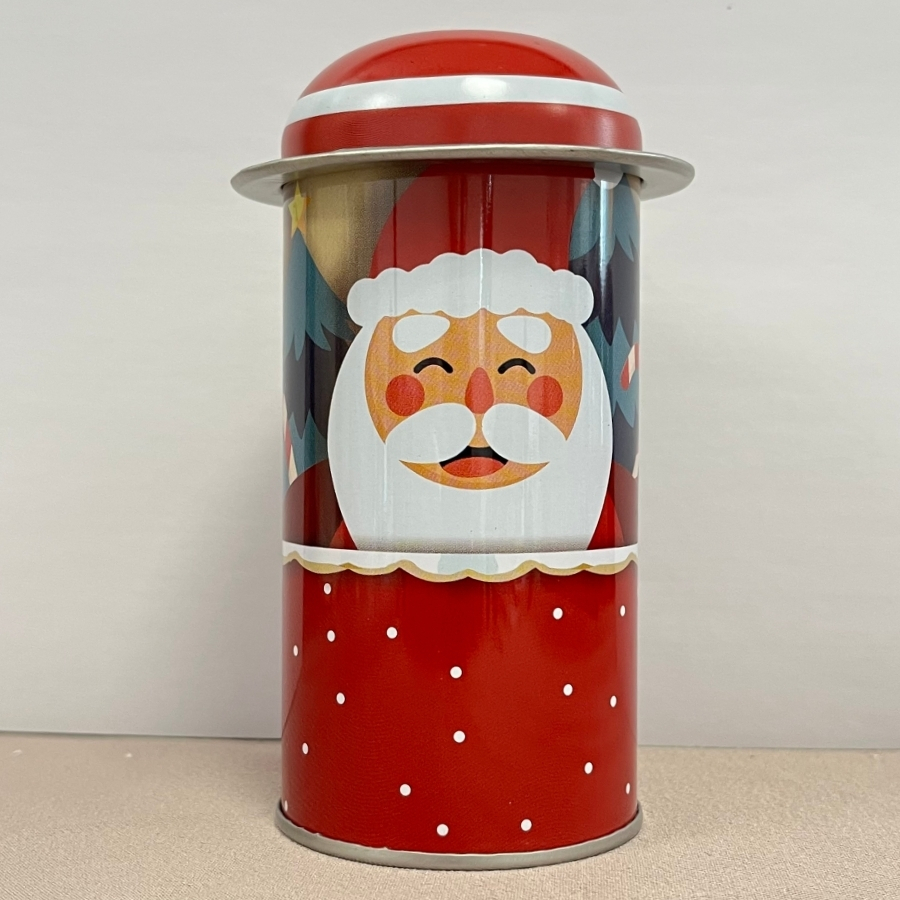 A Mini Lata Decorativa de Natal - Papai Noel Bengalas Doces - 5,5x11cm é uma peça divertida e encantadora, perfeita para dar um toque especial à sua decoração natalina. Com uma ilustração alegre do Papai Noel segurando bengalas doces, essa lata une o clima festivo à funcionalidade, sendo ideal para guardar balas, bombons, pequenos mimos ou compor arranjos decorativos em mesas, estantes e lembrancinhas.