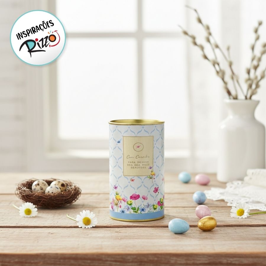 Além de funcional, a lata decorativa reutilizável agrega valor ao presente mesmo após o uso, podendo ser reaproveitada para organização ou decoração. Seu tamanho é ideal para ovos de 250g, garantindo encaixe seguro e uma apresentação caprichada, sendo uma excelente escolha para confeiteiros, lojistas ou para quem deseja presentear com charme.