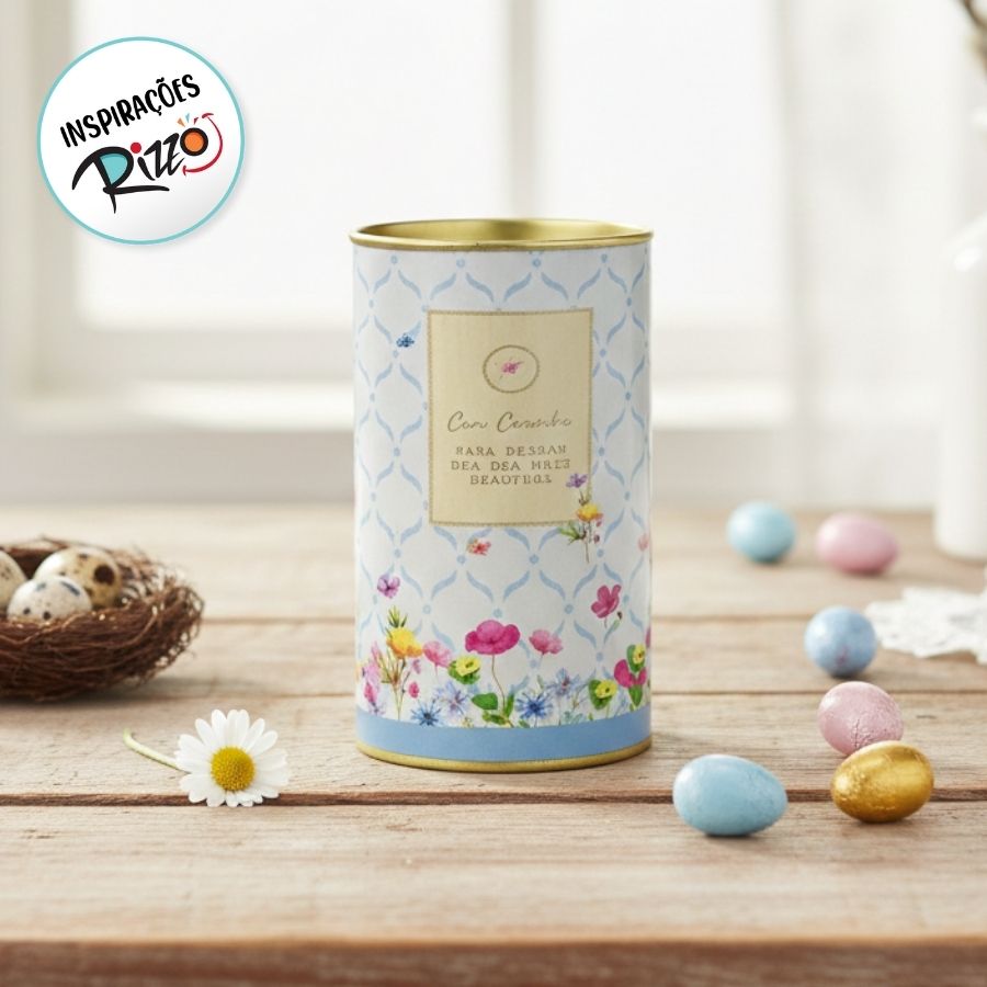 Além de funcional, a lata decorativa reutilizável agrega valor ao presente mesmo após o uso, podendo ser reaproveitada para organização ou decoração. Seu tamanho é ideal para ovos de 500g, garantindo encaixe seguro e uma apresentação caprichada, sendo uma excelente escolha para confeiteiros, lojistas ou para quem deseja presentear com charme.
