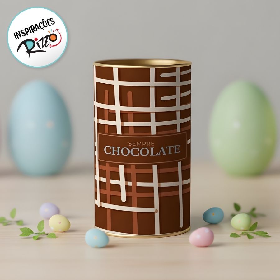 Produzida em material rígido, a lata possui excelente durabilidade e pode ser reutilizada após o uso, funcionando também como peça decorativa ou organizadora. O formato cilíndrico aliado ao tema chocolate torna a peça perfeita para lojistas, confeiteiros ou para quem deseja entregar um presente marcante e cheio de personalidade. Além disso, o acabamento cuidadoso e o fechamento preciso ajudam a manter o conteúdo protegido e com ótima apresentação.