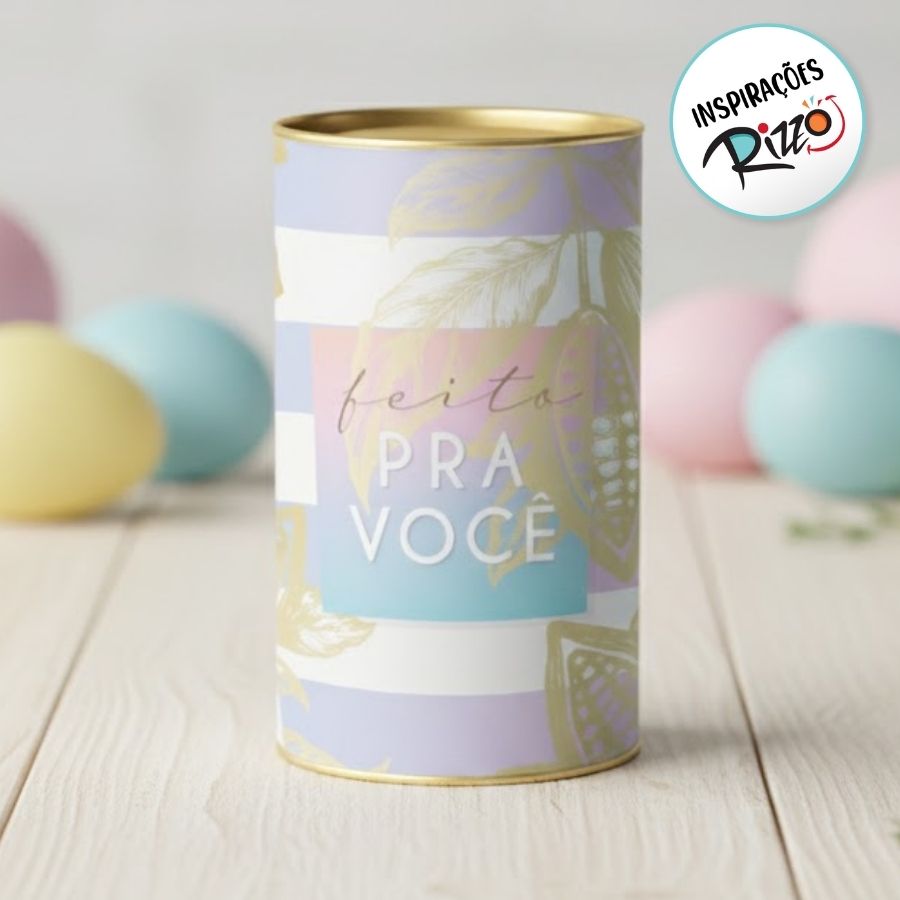 Com dimensões de 12,5x22cm, essa lata oferece excelente espaço interno, ideal para ovos artesanais, kits personalizados ou lembranças especiais. O design degradê dá um toque exclusivo, combinando beleza e versatilidade, permitindo compor embalagens temáticas e sofisticadas, além de combinar facilmente com fitas, adesivos e outros elementos decorativos.