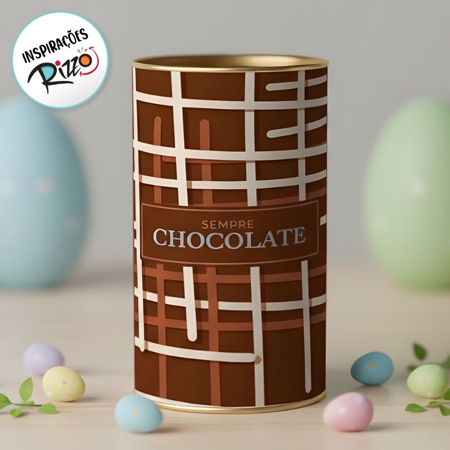 Produzida em material rígido de alta qualidade, essa lata combina durabilidade e beleza, podendo ser reutilizada após o uso como peça decorativa ou organizadora. O acabamento detalhado e o tema chocolate tornam essa embalagem uma excelente opção para confeiteiros, lojistas e para quem deseja presentear de forma marcante. Seu fechamento firme mantém o conteúdo protegido, valorizando ainda mais o ovo de Páscoa.