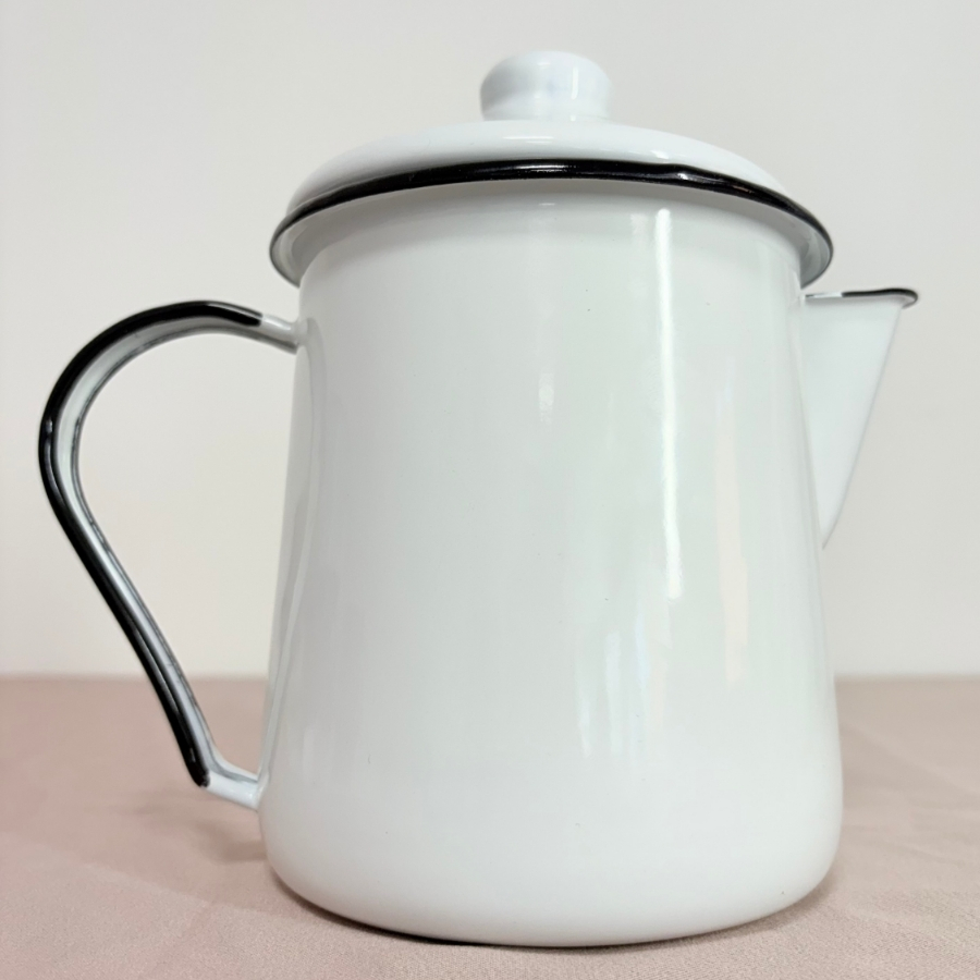 Leiteira Tradicional para derreter velas, Modelo Mãe Agata, com design em branco e preto, capacidade de 935ml e 17cm de altura.