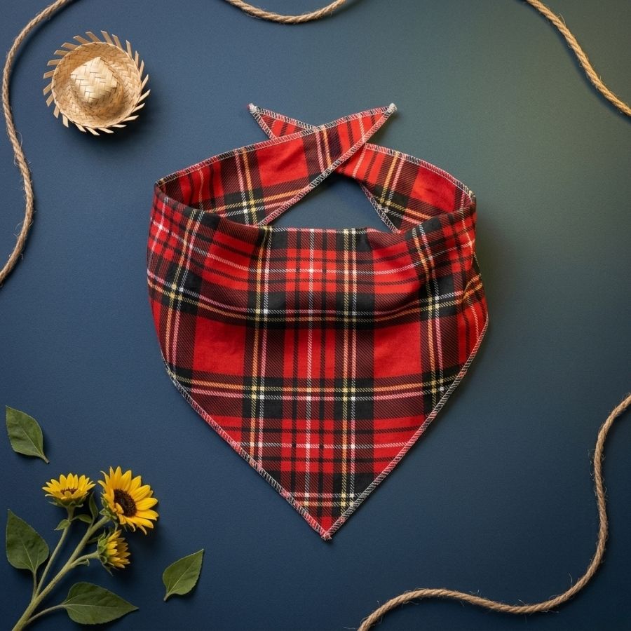 Lenço caipira xadrez vermelho, tamanho M, ideal para compor fantasias e acessórios de festas juninas, garantindo charme e autenticidade ao visual.
