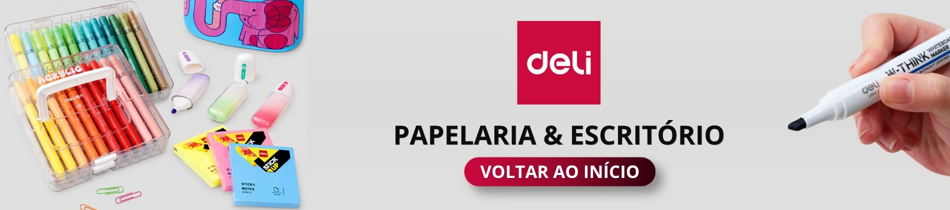 Se você procura por itens de escritório modernos e funcionais, a categoria Escritório Deli é a escolha ideal. Organize seu ambiente de trabalho com mais eficiência e conte com a qualidade dos produtos Deli — com exclusividade na Rizzo.
