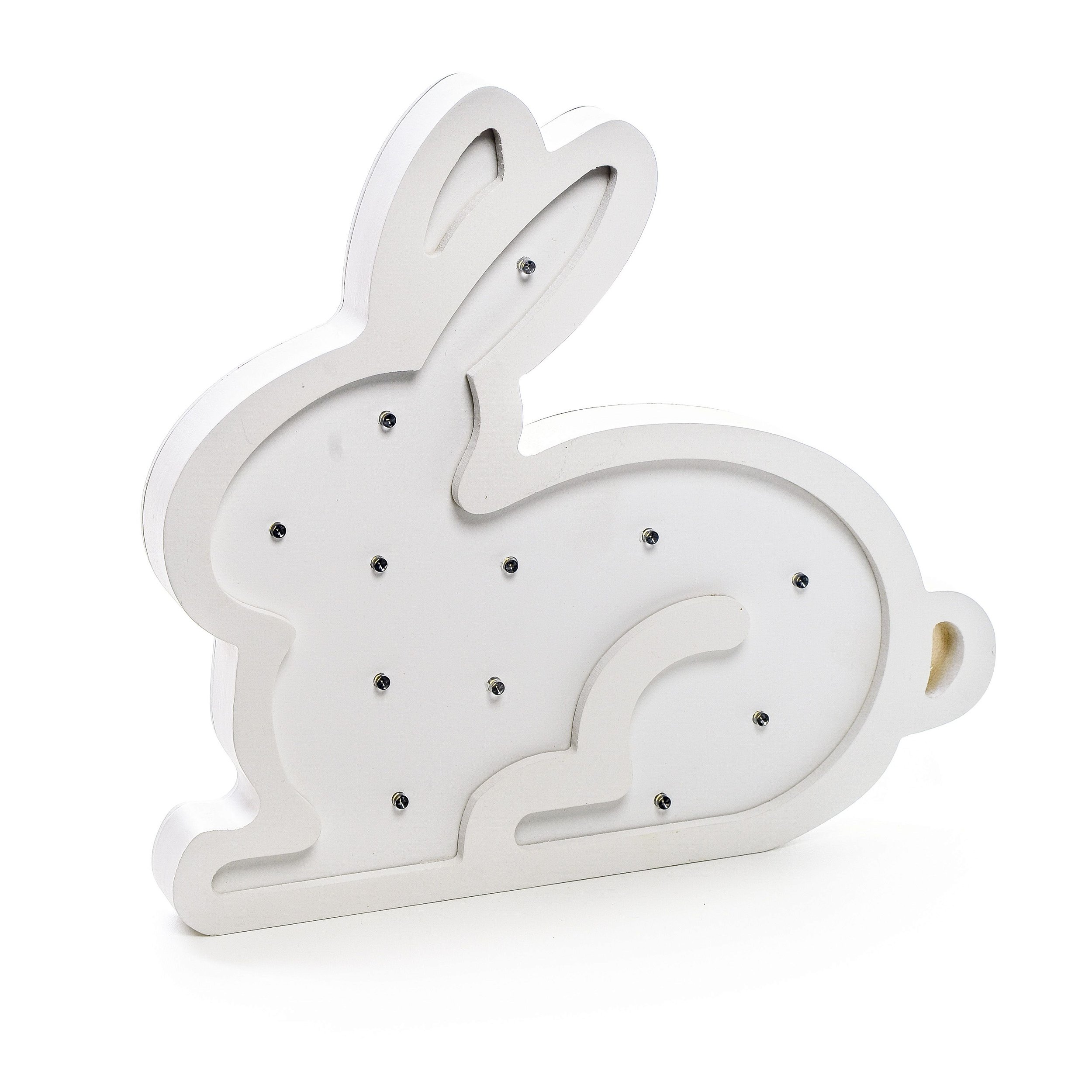 Luminária Coelho em Madeira Branco com LED - 25cm x 27cm x 3cm - Cromus Páscoa - Rizzo Embalagens