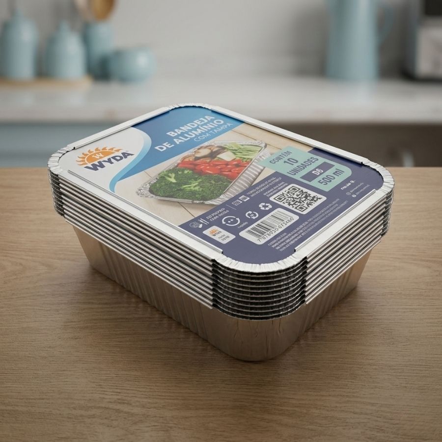 O diferencial da Marmita de Alumínio 500 ml está na tampa cartão aluminizado, que protege o conteúdo, facilita o empilhamento e contribui para uma apresentação mais cuidadosa e profissional. Perfeita para armazenamento de refeições, entrega de alimentos prontos, congelamento de porções e refeições transportáveis, combina resistência, leveza e funcionalidade. Versátil e confiável, agrega valor ao preparo de alimentos, promovendo organização, segurança e praticidade para o dia a dia.