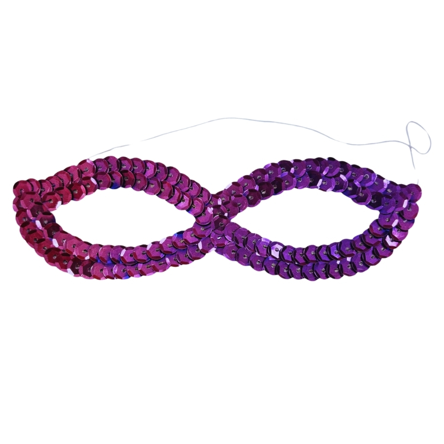 Máscara infantil feita com tecido de lantejoulas, tamanho aproximado de 17 cm de largura e 3,5 cm de altura, com elástico para fixação. Disponível em várias cores. Ideal para festas de Carnaval e eventos temáticos.