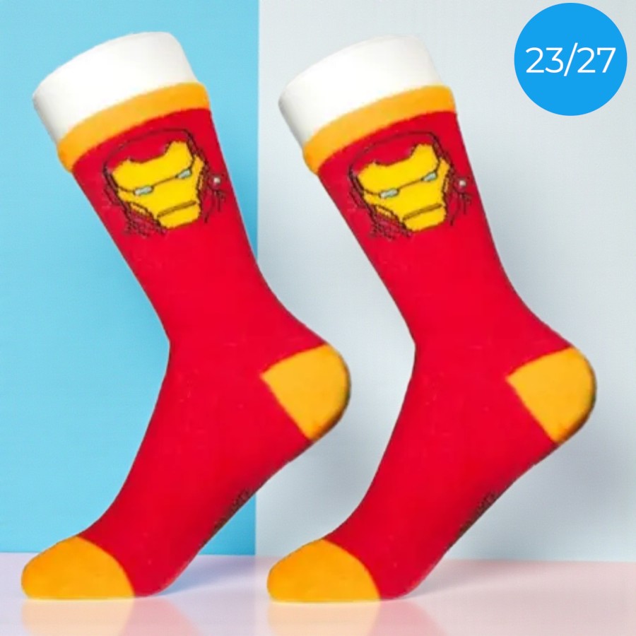 A Meia Infantil Cano Médio Homem de Ferro combina cores vibrantes e um design inspirado nos heróis Marvel Disney, trazendo um visual divertido para o dia a dia dos pequenos. O tema do personagem deixa o look ainda mais estiloso e cheio de personalidade, perfeito para quem adora o universo dos Vingadores. A proposta temática cria um toque especial que transforma qualquer composição.