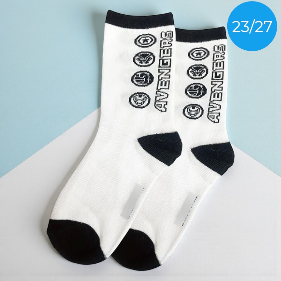 1 Par de Meias Infantil cano médio com estampa inspirada personagens Marvel. Produto licenciado.
