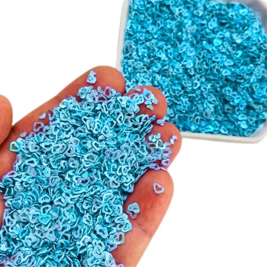 Fabricado com material leve e resistente, o Mini Confete Glitter Azul BB - Coração reflete a luz de forma suave e elegante, proporcionando um efeito visual sofisticado. É uma excelente opção para decorações temáticas, artes em resina, papelaria criativa e trabalhos manuais que pedem um toque sutil de brilho.