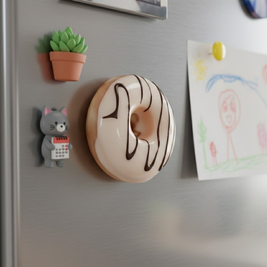 O Mini Donnut Decorativo com Imã – Chocolate Branco – 5cm é um item decorativo compacto e delicado, ideal para adicionar um toque temático à decoração. Com visual inspirado em um mini donnut de chocolate branco, ele valoriza pequenos espaços e contribui para uma ambientação mais leve e atrativa.