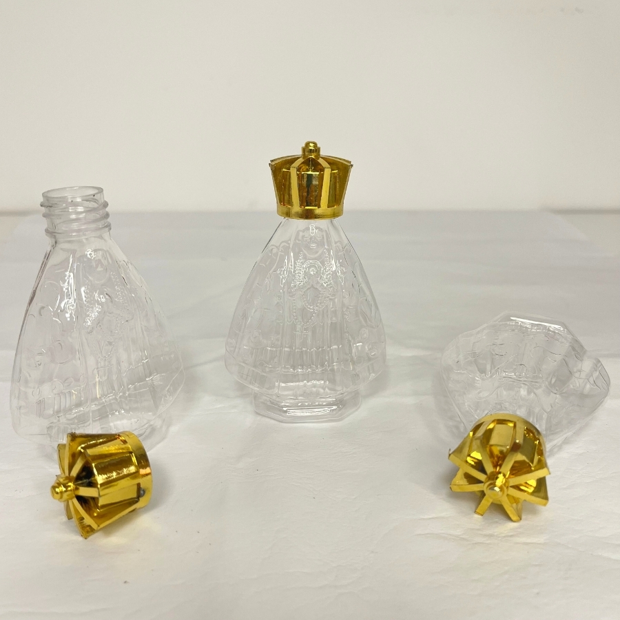 Além de sua funcionalidade, a Mini Garrafa Plástica para Lembrancinha e Água Benta 30ml - Nossa Senhora Aparecida é feita de material plástico resistente, garantindo a segurança do conteúdo. Seu design compacto e a representação de Nossa Senhora Aparecida tornam-na uma escolha charmosa e simbólica para ocasiões de fé e religiosidade.