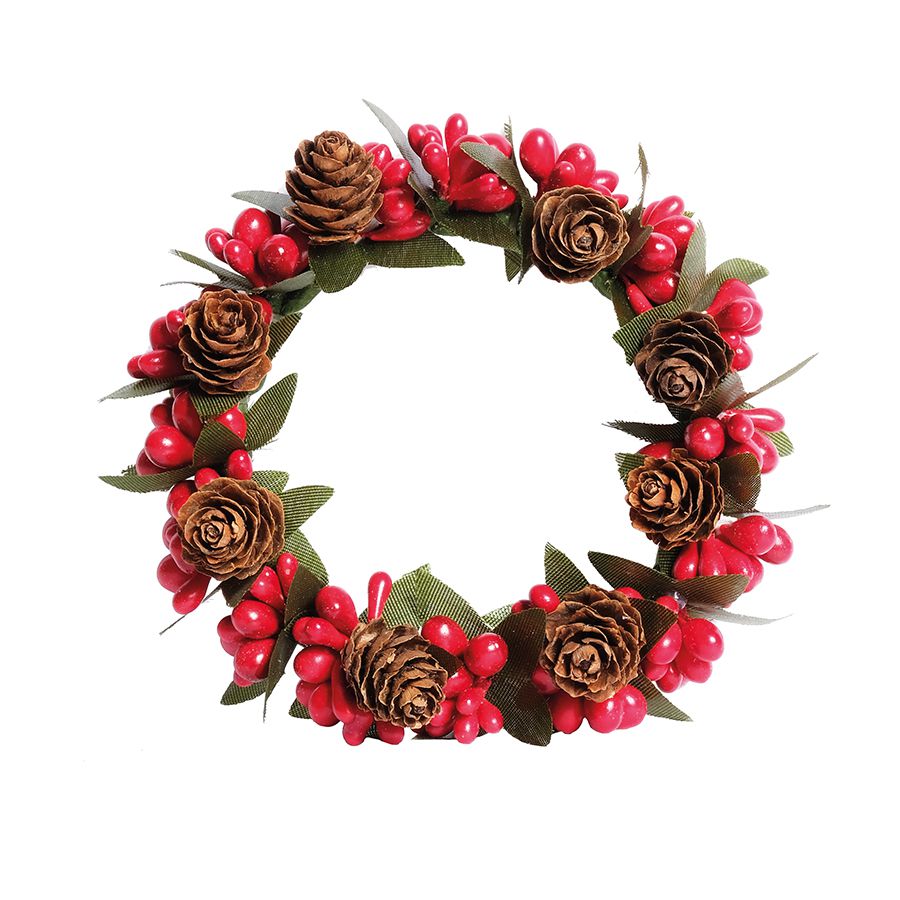 Mini Guirlanda Vermelho Verde e Marrom com Pinhas 10cm - 01 unidade - Cromus Natal - Rizzo Embalagens