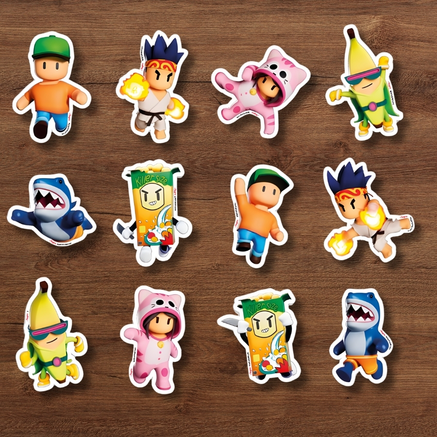 Deixe a mesa da festa ainda mais divertida com os Mini Personagens Decorativos Stumble Guys! Inspirados no jogo que faz sucesso entre crianças e adolescentes, esses mini personagens são ideais para complementar a decoração de bolos, cupcakes, lembrancinhas e arranjos de mesa, trazendo cor, alegria e personalidade à comemoração.