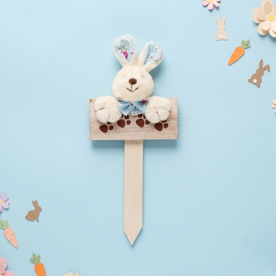 Enfeite que combina um coelhinho de páscoa de pelúcia fixado em uma plaquinha de madeira decoradas com lindas patinhas!