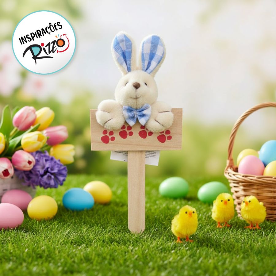 Feita com materiais de alta qualidade, essa mini placa pode ser usada em portas, paredes, guirlandas, cestas e arranjos, tornando o ambiente ainda mais acolhedor e festivo. Com um tamanho compacto de 18cm, é uma peça versátil e cheia de personalidade, perfeita para compor a magia da Páscoa.