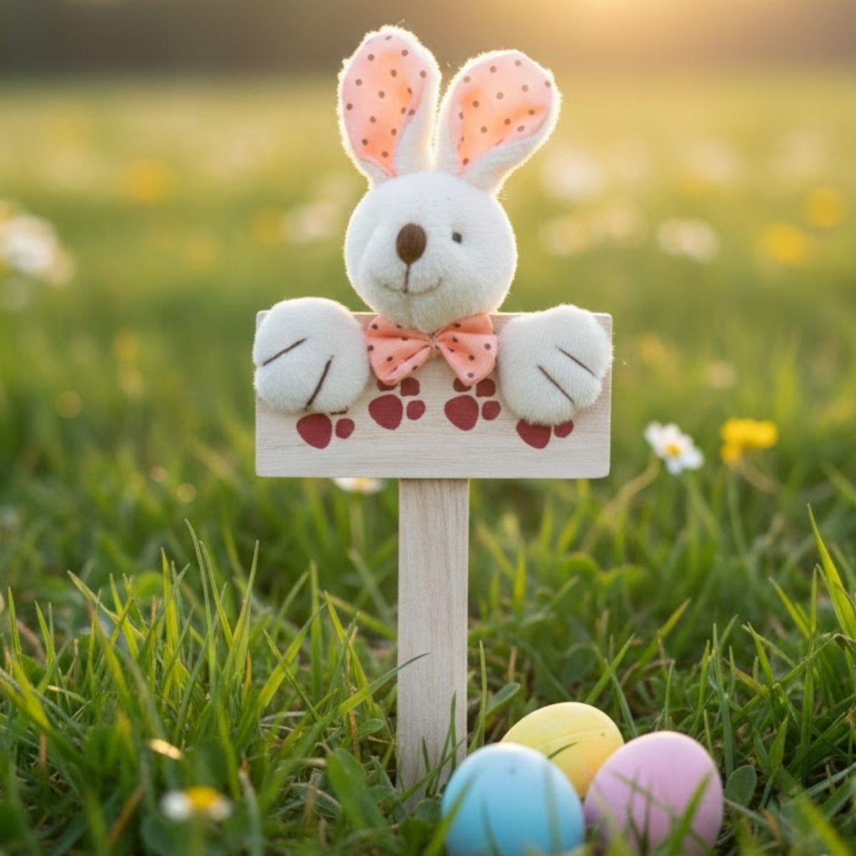 Mini Placa Patinhas Coelho de Páscoa com Laço Laranja de Bolinhas - 18,5cm - 1 unidade - Cromus - Rizzo