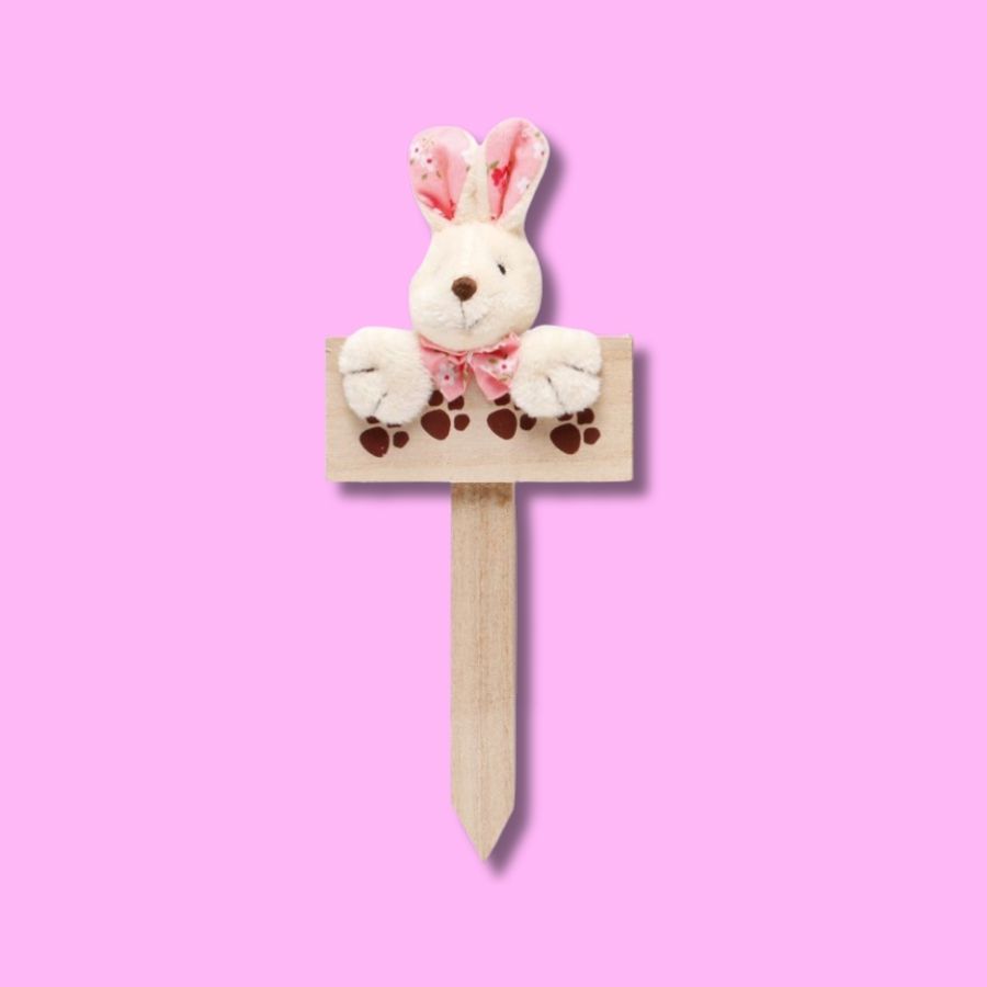 Enfeite que combina um coelhinho de páscoa de pelúcia fixado em uma plaquinha de madeira decoradas com lindas patinhas!