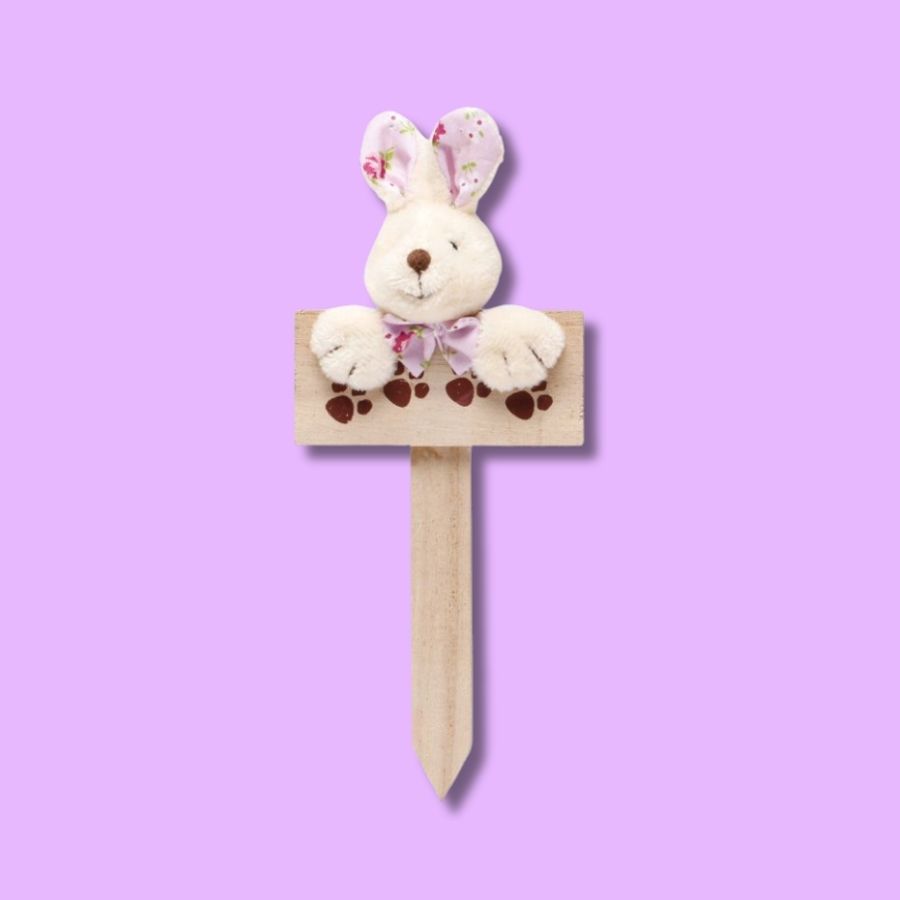Enfeite que combina um coelhinho de páscoa de pelúcia fixado em uma plaquinha de madeira decoradas com lindas patinhas!