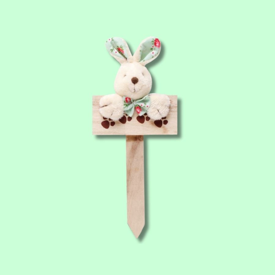 Enfeite que combina um coelhinho de páscoa de pelúcia fixado em uma plaquinha de madeira decoradas com lindas patinhas!
