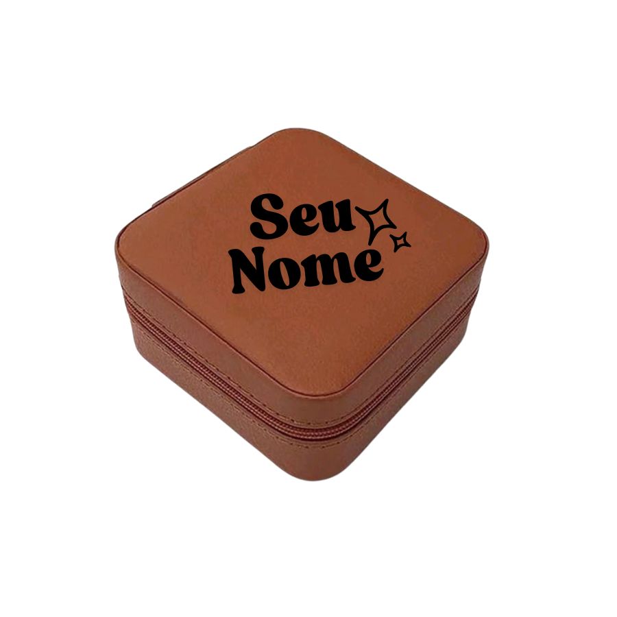 Mini porta-joias compacto e elegante, com nome personalizado em dourado e disponível em várias cores. Ideal para presentes e para quem busca praticidade com estilo.