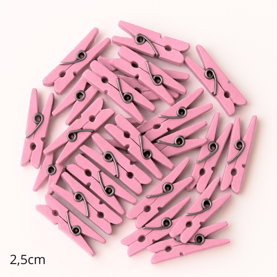 Mini Prendedor de Madeira Rosa 2,5cm - 50 Unidades - Rizzo