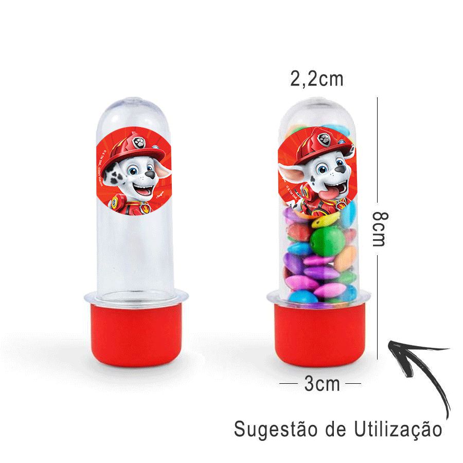Mini Tubete Lembrancinha Festa Patrulha Canina 8cm 20 unidades - Vermelho - Rizzo Embalagens